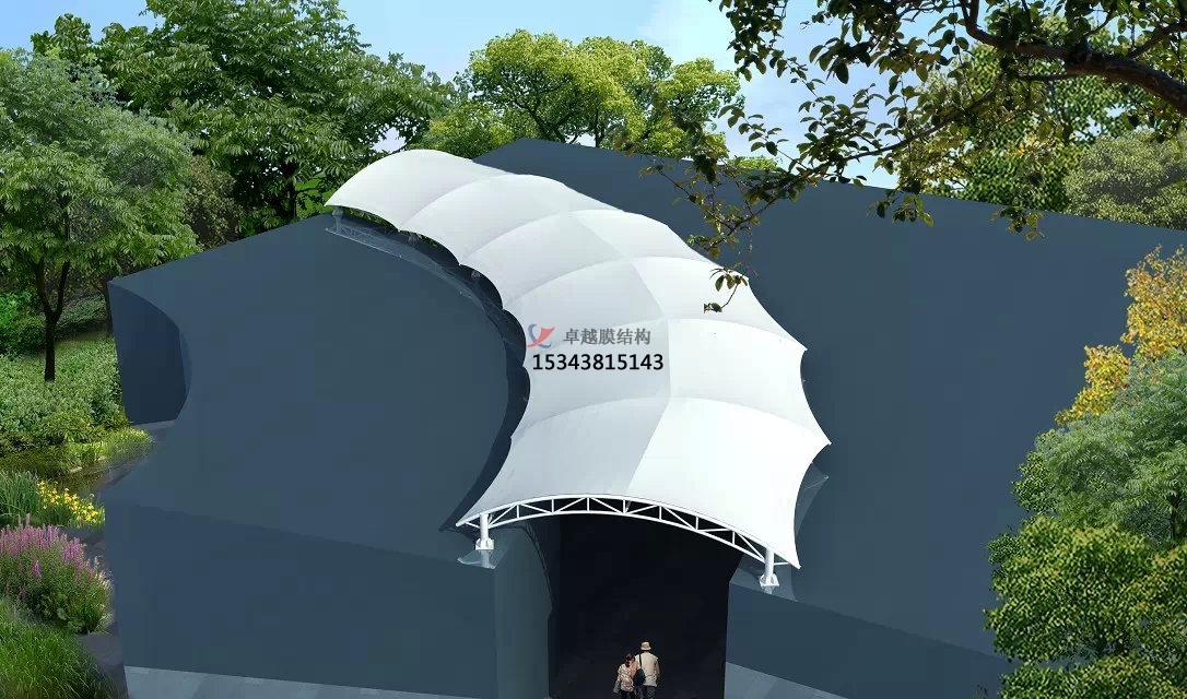 對于張拉膜結構頂棚,任何附加的支撐和修飾都是多余的,其結構本身就是造型;換句話說,不符合結構的造型是不可能的,因為那樣的薄膜不是飄動的就是缺乏穩定性的。張拉膜結構的美就在于其“力”與“形”的完美結合。夜間光影投射效果:其中更常見的形式就是景觀張拉膜,景觀張拉膜能提供豐富多彩的用途,并與園林景觀溶為一體。創造出讓人們盡情享受的快樂空間。充分展示了結構構件清晰受力的藝術之美,它巧妙的整合周圍的環境,給人們一種高貴典雅、浪漫溫馨之感。張拉膜結構以其輕盈飄逸的造型、柔美并帶有力量的曲線和大跨度和大空間的鮮明個性和標識性,應用于城市小品設計中。多種用途都表明,張拉膜的造型建筑更有簡約性使其不能隱藏任何設計缺陷,張力的松弛或是不連續都會被充分暴露出來,而且會導致膜面褶皺及變形,降低了結構的使用壽命。