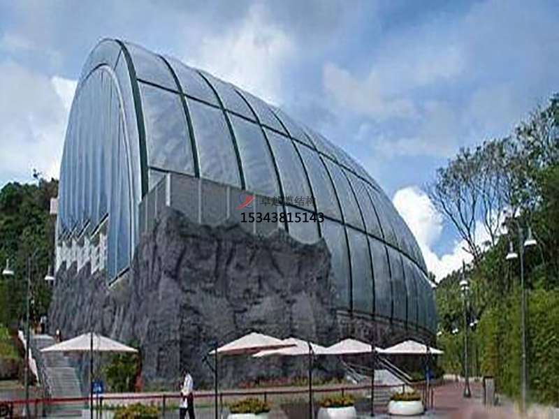 從客觀上是來看,膜結構展覽館是與其他得展覽館得建筑是*大的不同就是在外形上是擯除了單一的直線線條,是增加了弧形得線條,而這一弧形線條的實現是得益于膜結構是所采用的具有張拉性質的膜材料,PTFE膜材料是在極細的玻璃纖維編織成的基布上是涂上了PTFE(聚四氟乙烯)樹脂而形成的復合材料。