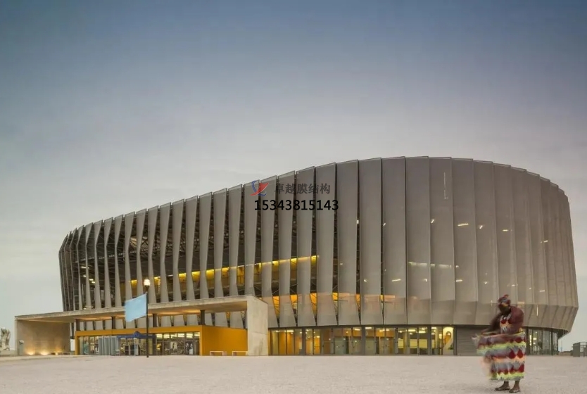羅安達(dá)綜合體育館位于安哥拉首都羅安達(dá),該場(chǎng)地承辦了2013年場(chǎng)地冰球世界杯,這也是場(chǎng)地冰球世界杯第一次在非洲舉辦。項(xiàng)目面積30000㎡。可以容納12000名觀眾,該體育館采用膜結(jié)構(gòu)幕墻作為外立面。為了適應(yīng)羅安達(dá)(安哥拉首都)的氣候特征,體育館上部分以平坦的裝飾圍欄配合膜結(jié)構(gòu)作為建筑表皮。