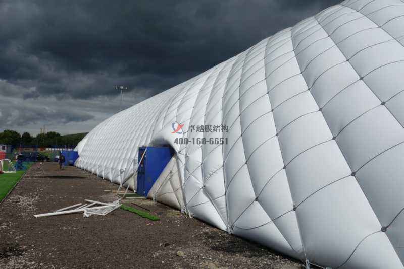 4. 普通的氣膜沒有鋼纜或者只有縱橫鋼纜的加固,抗風雪的能力弱,事故率高,不能作為永久建筑使用;只有斜向網狀鋼纜系統,可以確保氣膜的抗風雪性能,也是好的可作為永久建筑使用的氣膜。