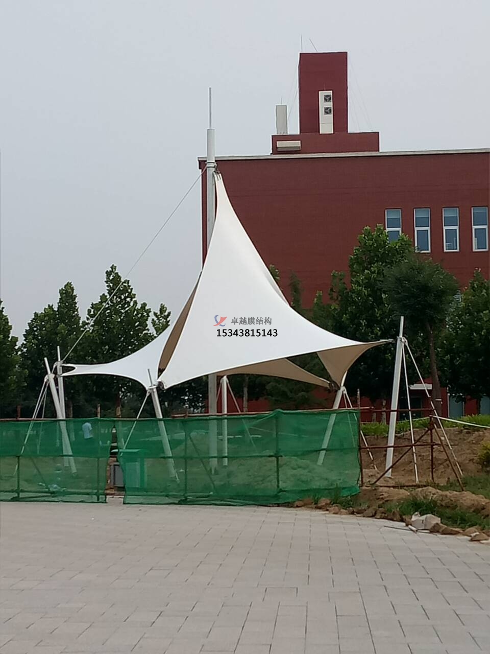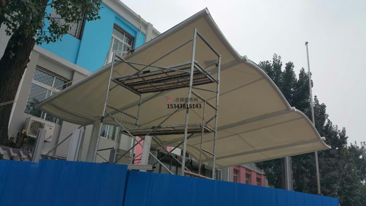 PVC膜材是一種經濟實惠的膜材,由聚脂纖維織物加上PVC涂層(聚氯乙烯)而成。它的材質柔軟,易于施工,但耐用年限較短,一般在5~8年。為了改善其耐候性,近年來已研發出在PVC涂層材的表面處理上做氟素系樹脂涂層的膜材