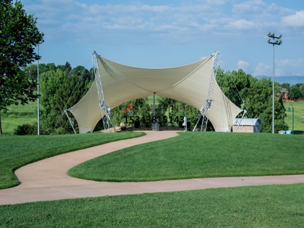 1、在進行車棚安裝前,需將膜結構的三個部分展開,分別是膜體展開、連接固定和張拉成形。
