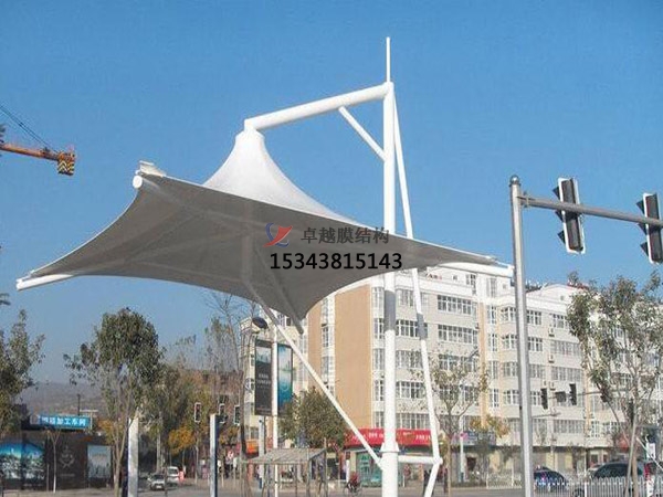 膜結構雨棚是一種全新的建筑結構形式,它集建筑學、結構力學、精細化工與材料科學、計算機技術等為一體,具有很高技術含量。其曲面可以隨著建筑師的設計需要任意變化,結合整體環境,建造出標志性的形象工程。