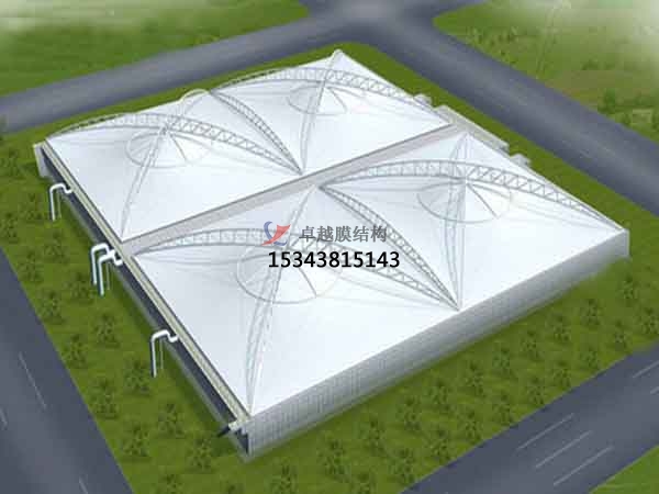 鄭州市卓越膜結構工程公司是集污水池加蓋反吊膜加蓋工程設計施工、結構設計、靜動力計算分析、整體結構安裝以及使用維護于一體的綜合性工程公司。污水池反吊膜結構中的高強度柔韌薄膜稱膜材,它是一種耐腐蝕、耐高溫、耐久用、高強度的樹脂類涂層織物,由多種復合PVC樹脂涂層刀刮成型,具有質地柔韌、厚度小、重量輕、透光性好的特點。對自然光吸收和透射能力、阻燃,具有良好的耐久、防火、氣密等特性;表面經過特氟龍處理或二
