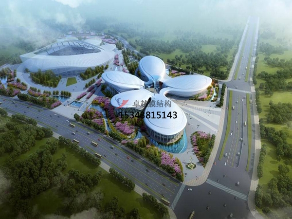 具有特定功能的建筑都可通過立意得以表達,張拉膜結構的獨特外形體現了建筑自身的自然美感。這些建筑形態本身和與其相協調的傳統建筑一起構成了令人興致盎然的地面標志性建筑。更好的膜結構設計是結構與外形的有機融合,使其顯得了類拔萃,同時與自然環境、歷史及現代的城市景觀有機結合。輕型結構可以看成是大型的雕塑作品,可為其周邊空間增添活力,成為周圍環境的補充和焦點。