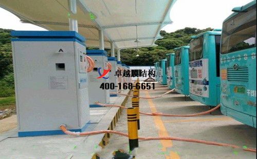 膜結構充電站樁車棚設計、施工案例,我們在潛江承接了潛江市楚捷公共交通有限責任公司、潛江和聚新能源汽車銷售有限公司、潛江市汽車站