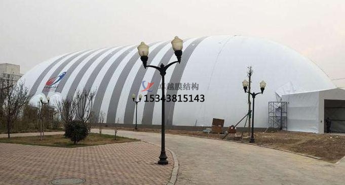 充氣膜體育館是用特殊的建筑膜材做外殼,配備一套智能化的機電設備在氣膜建筑內部提供空氣的正壓,把建筑主體支撐起來的一種建筑結構系統。