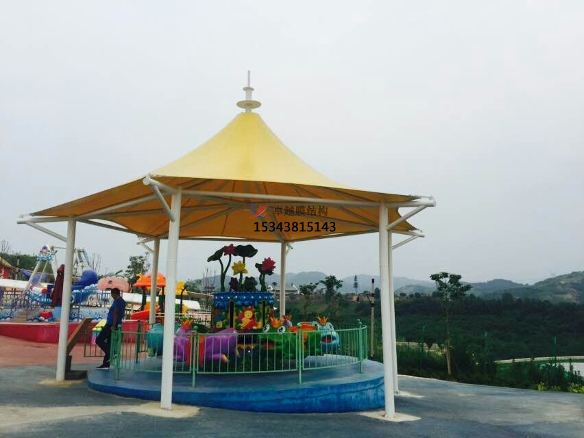 3:簡易拆卸,移動和可以更換性能,游樂園的建筑和其他項目建筑的很大不同是,游樂園需要定期或者不定期做一些改造或者調整,這樣游客才會重復來玩。膜結構恰好能滿足這一點,比如,同樣是一個休息亭,換個顏色,或者換個造型,只需要增加或者減少局部的鋼結構桿件,換一塊膜就可以搞定,傳統的結構是沒辦法實現的。