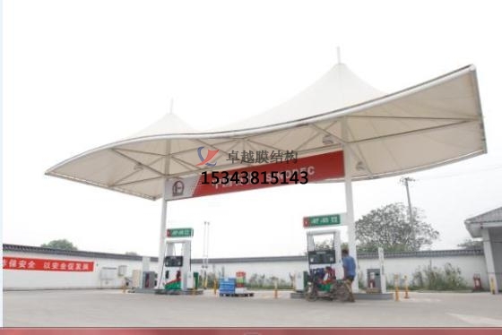 就拿加油站罩棚來說吧,傳統的罩棚一般是用無數根(只是想說數量大,別較真兒)鋼管組成的網架支撐起來的,沉重且易腐蝕,易褪色。膜結構加油站則大膽地走起了“減肥”路線,省去了這些網架,采用型鋼結構,不僅輕便了,還延長了使用壽命,而且檐面采用的膜結構復合材料,可保持10年不褪色。