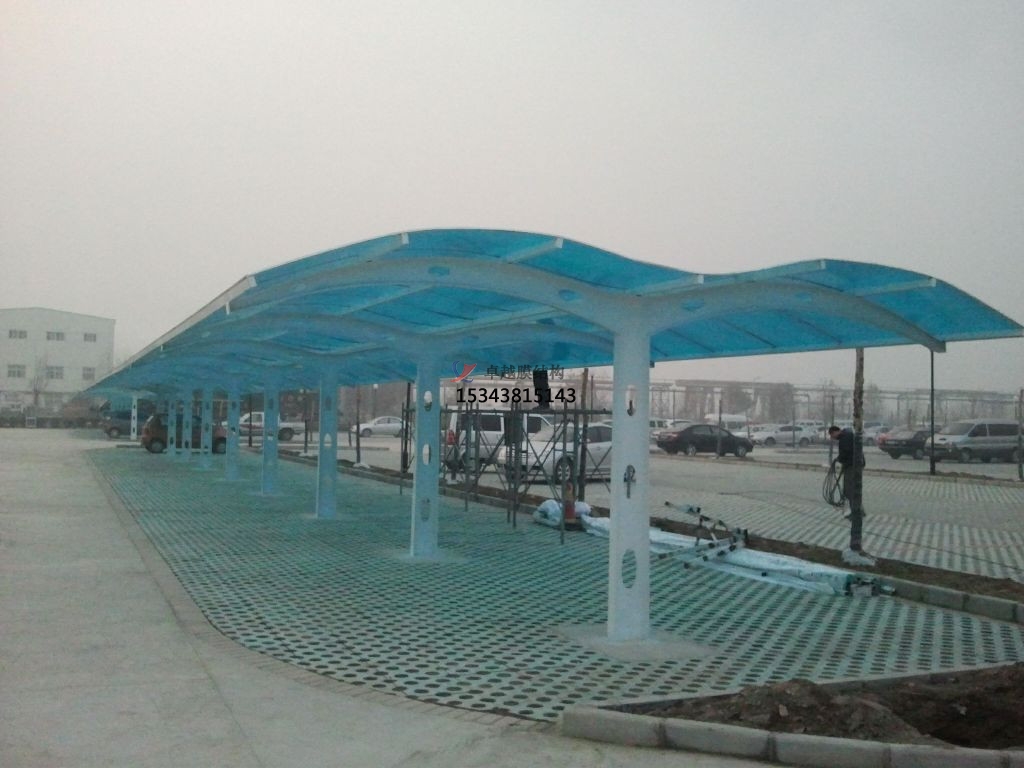 商業廣場雨棚搭建設計特別適合用來建造城市標志性建筑的屋頂,如體育與娛樂性場館,需有廣告效應的商場、餐廳等。城市的交通樞紐是城市命脈的關鍵性建筑,使用功能要求建筑物各組成單元的標志明確。因而近來年,這類建筑越來越多采用膜結構。建筑膜材料的使用壽命為 25 年以上。在使用期間,在雪或風荷載作用下均能保持材料的力學形態穩定不變。建成于 1973 年的美國加州 La Verne 大學的學生活動中心是已有 23 年歷史的商業廣場雨棚搭建建筑.跟蹤測試與材料的加載與加速氣候變化的試驗,證明它的膜材料的力學性能與化學穩定性指標下降了 20 %至 30 %,但仍可正常使用。膜的表層光滑,具有彈性,大氣中的灰塵、化學物質的微粒極難附著與滲透,經雨水的沖刷建筑膜可恢復其原有的清潔面層與透光性。