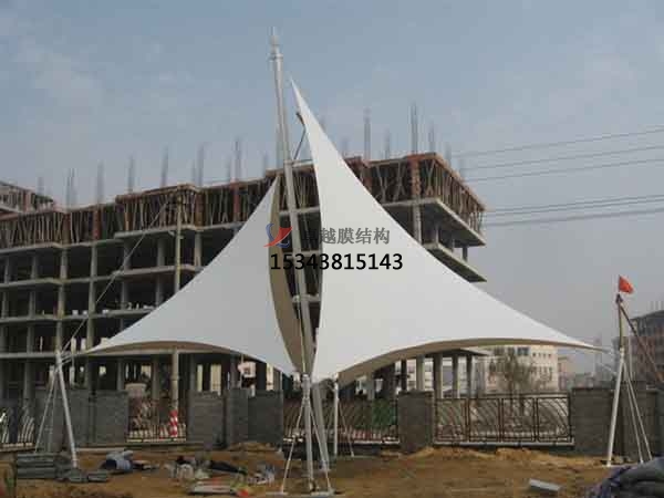 膜結構車棚在室內人們對白色或米白色膜材會有很好的色彩感知,因為這兩種色彩表現出對可見光具備線性光譜透射的特征。透射程度隨透射光波長的增添而增添,這使得透射光比入射光略暖和。透射光譜與纖維及其特性、涂層的厚度以及附加面層有差,生產商應給出更多的具體信息。相對于涂覆PVc的聚酯纖維膜材,涂覆PTFE的玻璃纖維膜材的透射光譜。