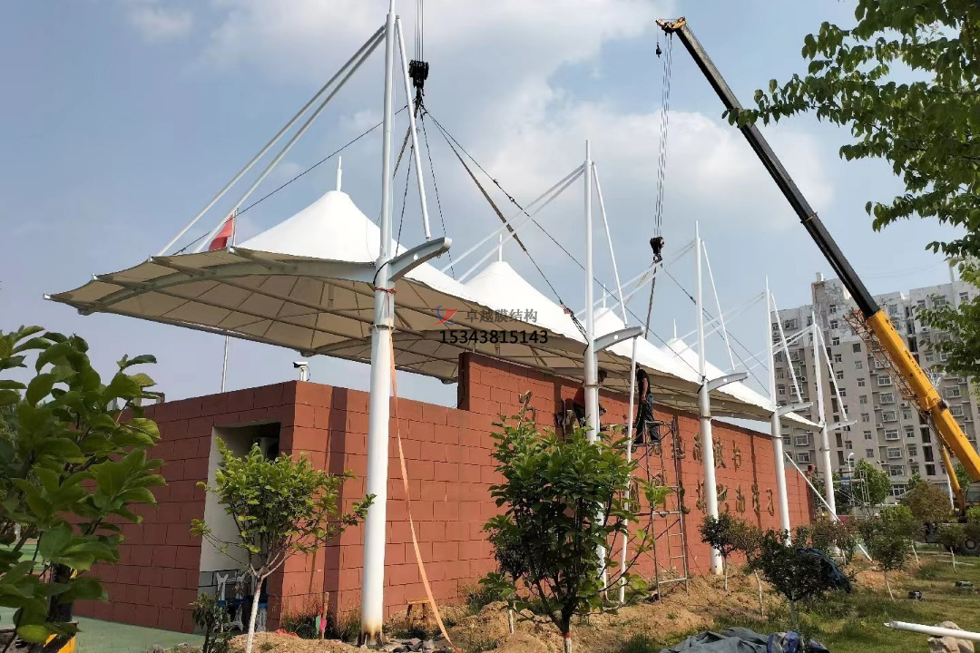 - 預先設計:根據客戶需求進行膜結構設計,確保結構穩定、美觀。 - 材料準備:選擇合適的PTFE膜材料,并進行裁剪、拼接等前期處理。 - 基礎施工:搭建基礎框架,確保基礎穩固、符合設計要求。 - 膜材安裝:將PTFE膜材料鋪設在基礎框架上,通過專用設備進行拉伸、固定。 - 質量檢查:對膜結構進行嚴格的質量檢查,確保無破損、變形等問題。 - 竣工驗收:完成施工后,進行竣工驗收,確保膜結構符合設計要求和使用標準。