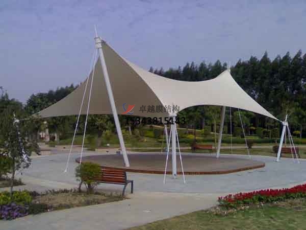 膜結構是一種由高強膜材料和強構件(鋼結構或拉索)通過一定方式使其內部產(chǎn)生一定的張應力以形成某種空間形狀,可作為覆蓋結構并能承受一定的外荷載的空間結構形式。膜結構以良好的自潔性、隔熱性以及高強耐久、造型新穎、自重輕等優(yōu)點廣泛應用于休閑小區(qū)、輕型大跨度無柱空間或輕型屋蓋建筑結構。