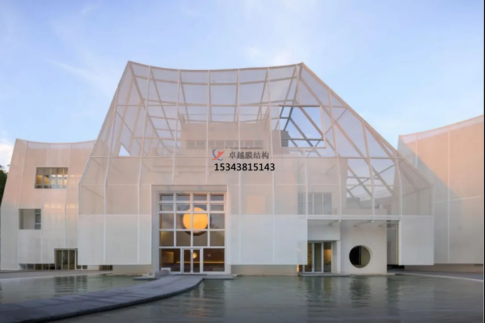 PTFE網格覆膜是在PTFE網格膜之上增加一層透明膜,目前市場上覆的透明膜也有很多種類,比如PTFE,ert透明乳膠(最便宜)和ETFE(最貴)等。PTFE網格覆膜在保持高透光的同時,還能起到防雨防水的作用。