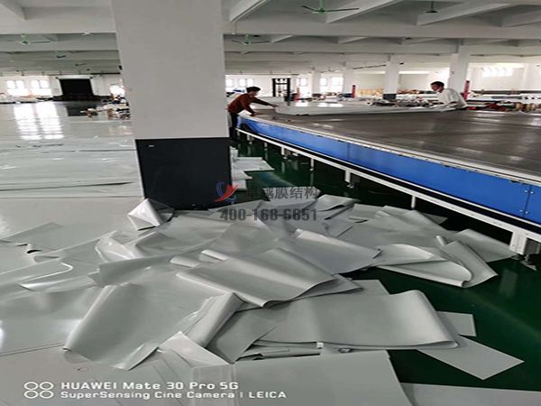 4、加工制作場地應平整,加工環境應滿足一定溫、濕度的要求。存放膜材的工作平臺應干燥無污物,整個加工制作過程應保持膜材清潔。