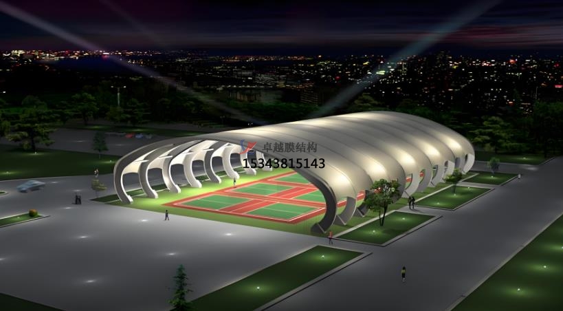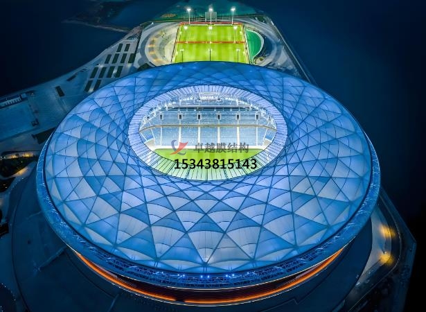 球場膜結構是一種以膜材料為主要覆蓋物,采用高強度柔性薄膜材料,結合鋼結構或索網結構,通過施加預應力形成具有一定剛度和承載能力的建筑結構。廣泛應用于足球場、網球場、籃球場等體育場館。