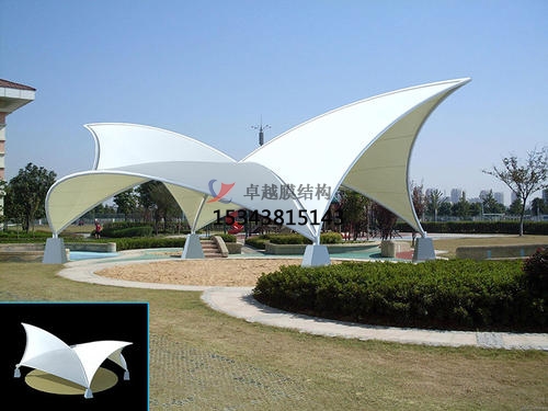 膜材料可濾除大部分紫外線,防止內部物品褪色。其對自然光的透射率可達25%,透射光在結構內部產生均勻的漫射光,無陰影,無眩光,具有良好的顯色性,夜晚在周圍環境光和內部照明的共同作用下,膜結構景觀表面發出自然柔和的光輝。所以膜結構景觀具備光學性能。