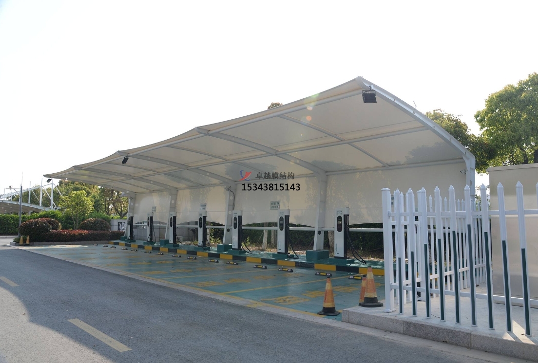 充電站膜結構雨棚作為一種新穎且實用的配套設施,正逐漸成為充電站建設的標配。這種雨棚不僅為電動汽車提供了安全的充電環境,還以其獨特的造型和美觀的外觀,為城市景觀增添了一抹亮色。充電站作為電動汽車的重要補給站,其安全性與便利性至關重要。