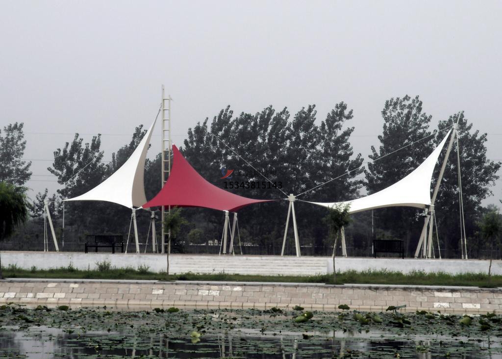 4、由于張拉膜景觀具有透光性,實踐結構中能夠清楚地看見焊縫,所以裁剪縫的安置一定要規則、合理,更好能形成一些漂亮的圖畫以添加結構的美感。假如膜外表設置有壓索或脊索,那么更好使裁剪縫與壓索或脊索重合,使索不至于打亂焊縫的圖畫安置。