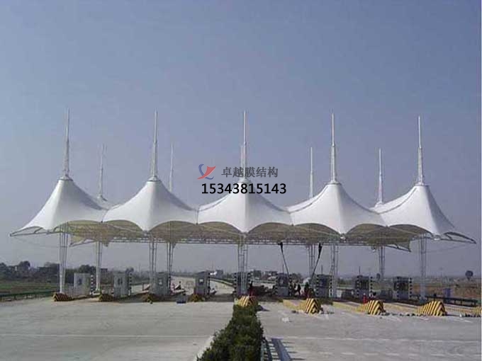 高速公路收費站在城市的進口處,規劃具有自己城市鮮明特征和文明神韻的建筑方式乃是每個城市開展的很好的選之作。而張拉膜以自己多變的特性,極具現代感又展示了一個城市的發展理念和思路。