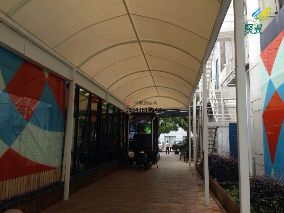 商業街膜結構穹頂天幕特點:透光性好、材質輕、適合大跨度,可以完美取代傳統的穹頂材料,而且使用壽命更長、自潔性更佳、安全性更高。