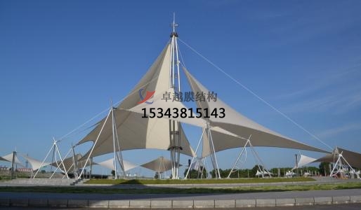 利用張拉膜的輕巧,別致的造型制作各種半封閉,全封閉的空間,使其構成全天候的修建空間,供給防風雨,防日曬等人工環境,并有較好的廣告標識作用,因而張拉膜是景象環境中很好的要選擇。