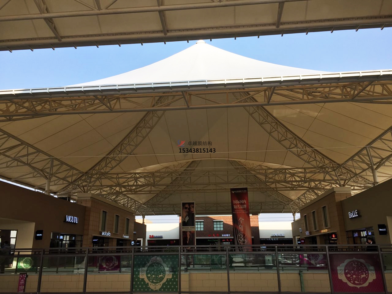 利用張拉膜輕巧,別致的造型建造各種半封閉,全封閉的不行空間,使其形成全天候的 建筑空間,提供防風雨,防日曬等人工環境,并有較好的標識招攬效果,因此是步行街改造和新建的選擇。