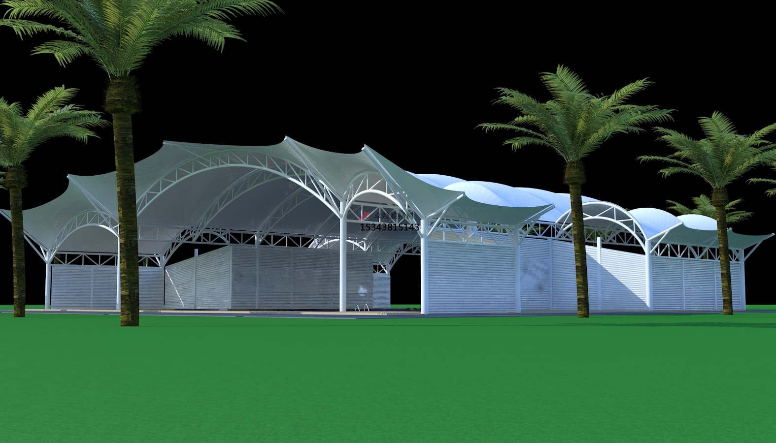 7、我司根據環境及應用場合的不同,把選好的“面料”(膜材)按尺寸裁剪,設計出各種獨特的建筑款式,再與“輔料”(加強構件,如鋼架、鋼柱或鋼索)結合通過一定方式使其內部產生一定的預張應力以形成某種空間。