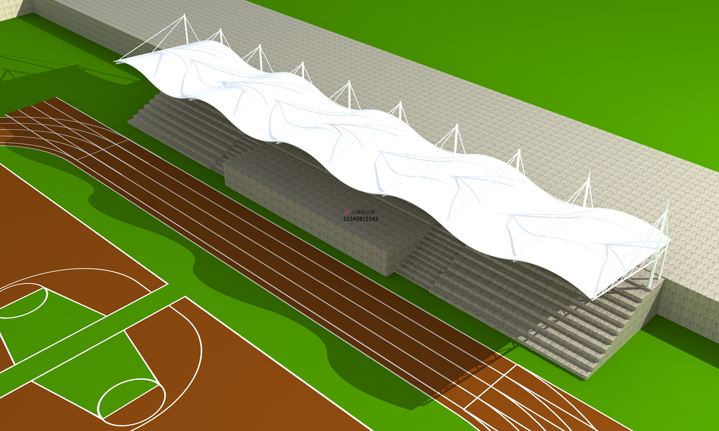 膜結構通過(鋼架、鋼柱或鋼索)一定方式使其內部產生一定的預張應力以形成某種空間形狀,作為覆蓋結構,并能承受一定的外荷載作用的一種空間結構形式,膜只能承受拉力而不能受壓和彎曲,其曲面穩定性是依靠互反向的曲率來保障,因此需制作成凹凸的空間曲面,故習慣上又稱空間