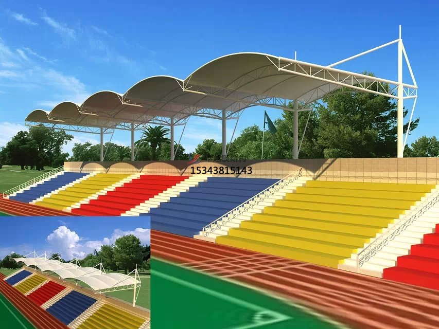 張拉膜看臺主要用于各類地方體育場主席臺雨棚,各類學校體育場看臺雨棚遮蓋,我公司是國內較早從事大懸挑張拉膜結構看臺設計施工的專業廠家,下面介紹一下我們在太白縣周邊縣市完工的一些張拉膜看臺設計施工案例,我公司先后在太白縣周邊承接了太白縣太白中學膜結構看臺雨篷/主席臺/舞臺安裝雨棚、太白縣高級中學張拉膜張拉膜看臺罩棚、太白縣咀頭小學張拉膜看臺遮陽棚等設計施工項目,簡介如下: