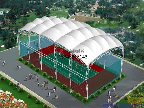 3天門廣播電視大學(xué)網(wǎng)球場膜結(jié)構(gòu)罩棚施工案例