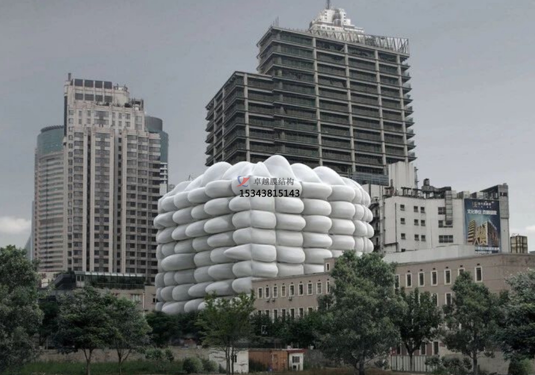 戶外充氣膜的核心結(jié)構(gòu)基于高強(qiáng)度的薄膜材料,通過內(nèi)部持續(xù)充氣產(chǎn)生壓力差,從而使膜體保持穩(wěn)定的形狀。這種薄膜材料通常具備出色的抗拉強(qiáng)度、抗紫外線性能以及耐候性,能夠抵御各種惡劣的自然環(huán)境。充氣膜的支撐系統(tǒng)相對簡潔,摒棄了復(fù)雜的鋼結(jié)構(gòu)或混凝土框架,僅依靠少量的錨固點(diǎn)與地面相連,大大簡化了施工過程,同時(shí)也降低了建筑成本。?