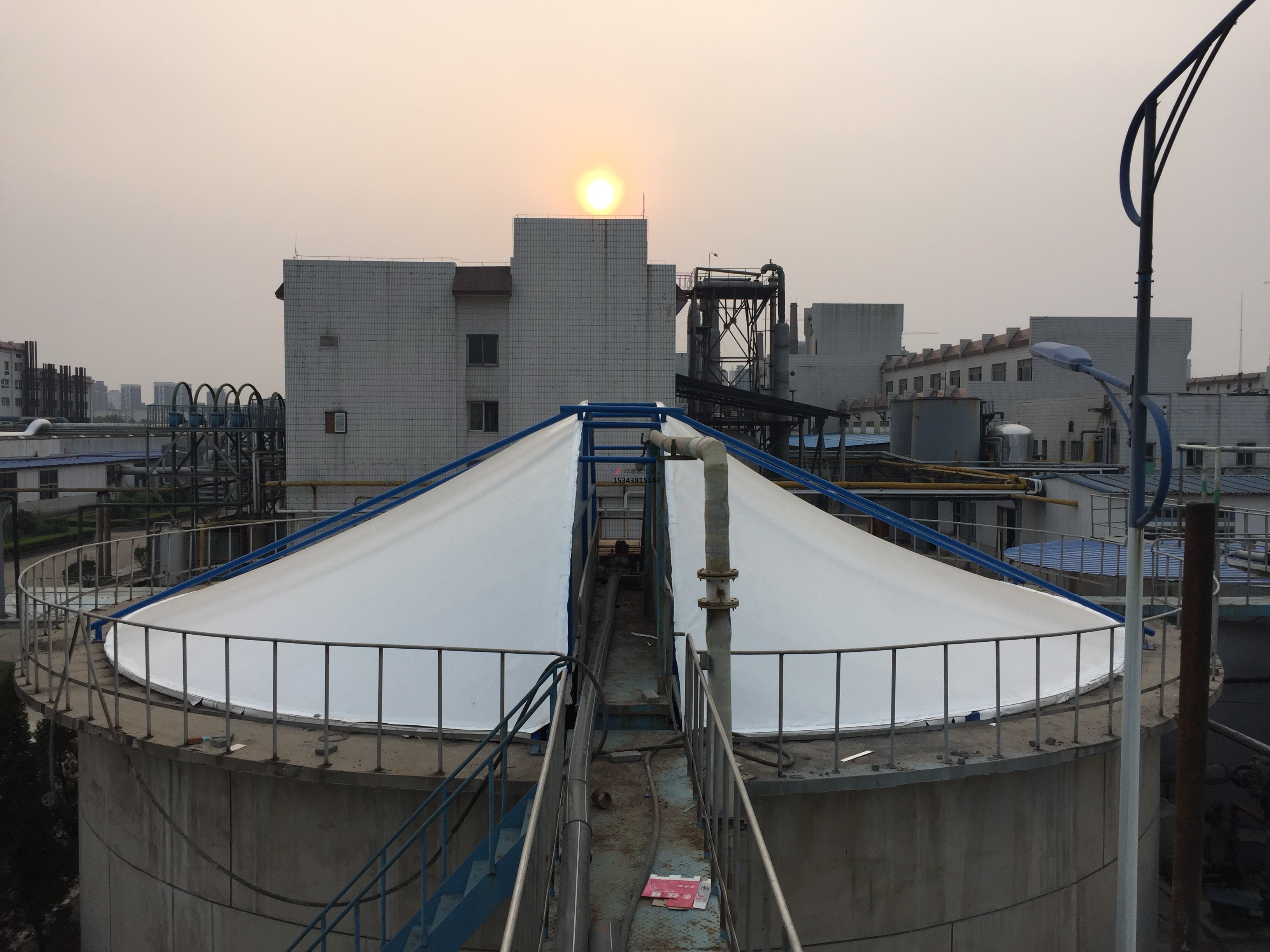 污水池封閉罩通常采用鋼支撐反吊UV膜結構技術,這種技術可以解決鋼結構由于與腐蝕性氣體接觸而帶來的腐蝕問題,同時實現了結構骨架與覆蓋材料的完美結合。此外,還有一種內外膜氣罩封閉技術,即雙膜氣罩,這種技術類似于在污水池上蓋了一個氣囊,通過四邊與污水池池壁的錨固,形成一個穩定的受力結構,從而將污水池池內惡臭氣體封閉在一個相對較小的空間里。