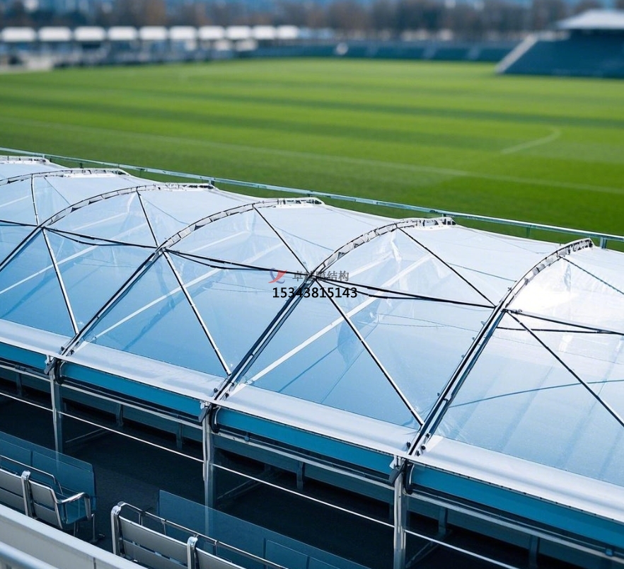 骨架式膜結(jié)構(gòu)在大型體育場館中廣泛應(yīng)用,其穩(wěn)定的鋼結(jié)構(gòu)骨架支撐大面積膜材,形成開闊的內(nèi)部空間。以足球場看臺為例,骨架式膜結(jié)構(gòu)可覆蓋整個觀眾區(qū)域,為上萬人提供舒適觀賽空間,且內(nèi)部無立柱阻擋視線,觀眾容量比傳統(tǒng)有柱看臺增加 10% - 15%。?