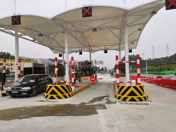 3.防火防震。收費站可謂是重型“庫”,遇火后果不堪設想。膜結構收費站所用膜材有非常好的阻燃性和耐高溫功能,遇火阻燃,遇高溫不變形等功能達到各個更好的規范。膜結構自重輕,結構支撐靈活,具有很大的柔性,能夠抵消強烈的橫向載荷,所以其抗震性能非常優異。