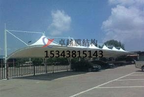 ***點,景觀膜結構遮陽棚整體框架采用方鋼焊接成型龍骨架,框架整體做防銹處理,刷防銹底漆三遍,表面噴涂白色***汽車漆,遮陽棚主立柱一般采用220mm鋼管或工字鋼作遮陽棚的***柱,車棚身整體結構牢固抗震防風系數高,耐腐蝕;