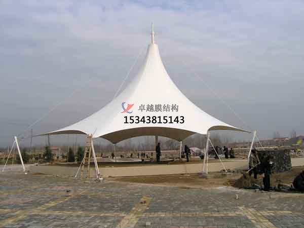 一個城市的中心區反映一個城市的地理風貌和民族風情,同時,也是一個城市文化發展程度的標志。而景觀設計要求其具有廣泛的可讀性、雅俗共賞,既有超凡脫俗的藝術價值,又能使大眾喜聞樂見與大眾息息相通。膜結構以其輕盈飄逸的造型、柔美并帶有力量的曲線和大跨度和大空間的鮮明個性和標識性,應用于城市小品設計中。
