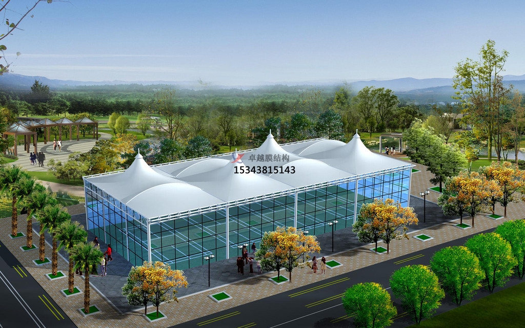 張拉膜景觀與傳統(tǒng)的停車棚相比,外觀更加美觀,張拉膜景觀受歡迎的原因不僅是新的停車棚源于中國(guó)汽車的激蕩,而且其材料的藝術(shù)感也使其能夠取代傳統(tǒng)停車棚的地位。膜結(jié)構(gòu)依靠形狀和顏色,結(jié)合當(dāng)?shù)氐臒崆椋匀粭l件和環(huán)境,創(chuàng)造出傳統(tǒng)無(wú)法實(shí)現(xiàn)的曲線和形狀。