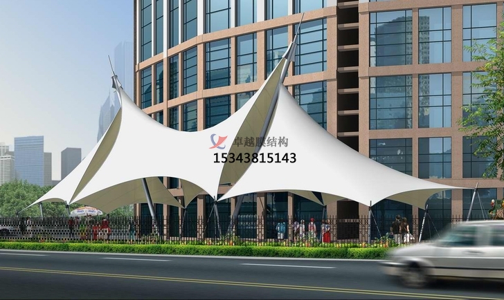 2、在商業廣場雨棚搭建的施工中,膜材張力是保證其穩定性的重要因素,為了能夠達到這樣一個較好的效果,要求施工人員根據實際情況隨時調整膜張力,避免因過度張力引起的膜撕裂。