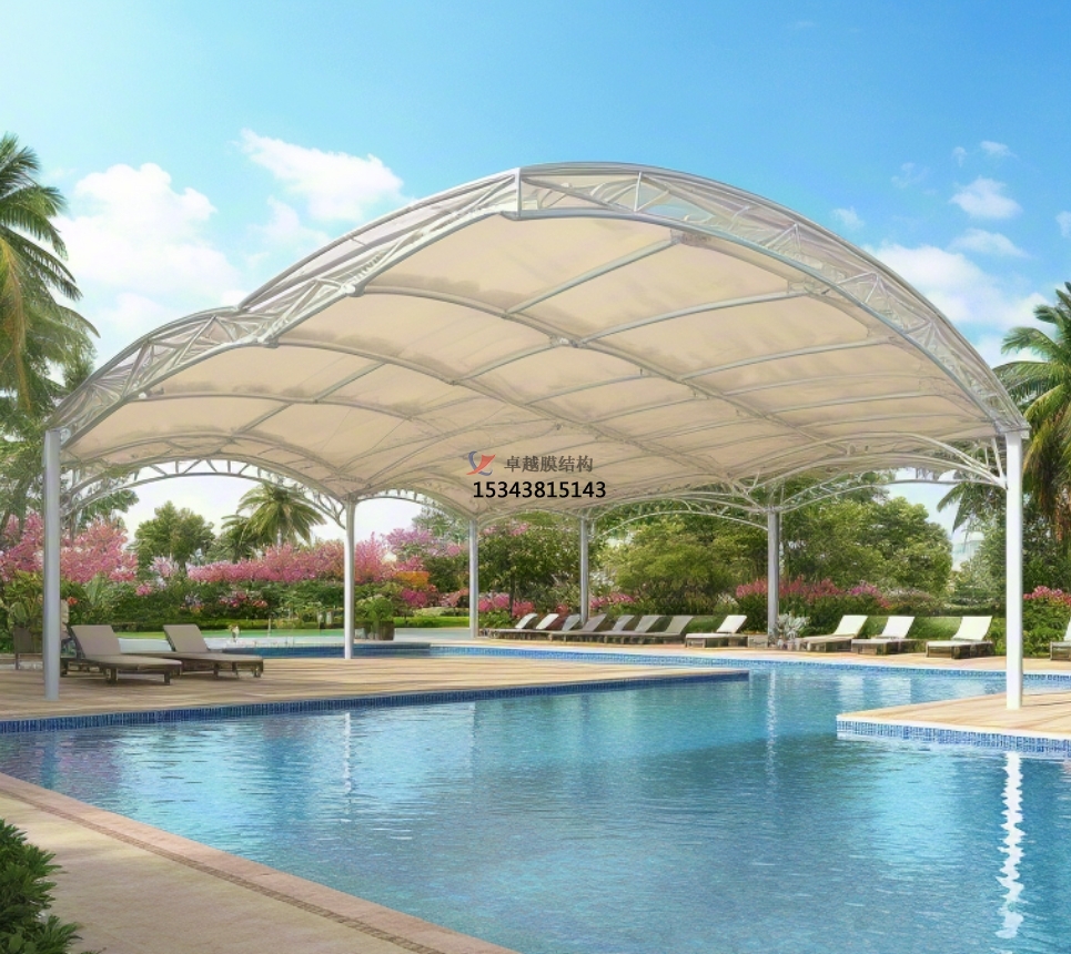 隨著現(xiàn)代建筑設(shè)計(jì)理念的不斷發(fā)展,游泳池膜結(jié)構(gòu)遮陽棚作為一種新型的建筑形式,正逐漸成為眾多游泳池的標(biāo)配。這種遮陽棚不僅為泳池提供了實(shí)用的遮陽擋雨功能,更以其獨(dú)特的造型和美觀性,為泳池增添了一道亮麗的風(fēng)景線。