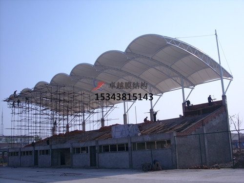 由于膜結構是張力結構的一種,只有在一定的張力功能下,膜結構才有一定的外形和剛度,因而膜結構建筑表現了力的平衡美,是一種受力更為合理的結構形式。采用輕質膜材,同時輔以柔性拉索、輕型鋼桁架的結構形式,可以很好地達到大跨度、覆蓋大空間的目的。