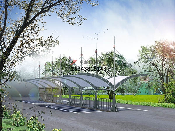 第三點,膜結構停車棚內部采用Φ38鍍鋅圓管與車棚框架焊接,加強棚頂部強度,可讓棚內感覺寬敞明亮,停靠車輛輕松方便,完全符合停車棚制作要求規范;