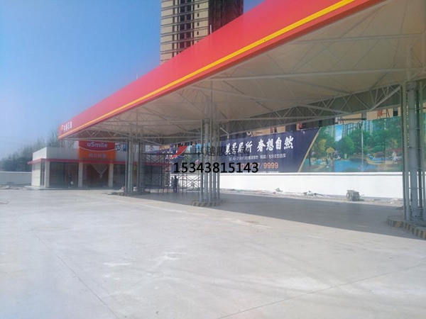 充電站雨棚施工建筑中所使用的膜材料很輕,每平方米的重量只有1公斤左右。因此充電站雨棚施工可以從根本上克服傳統結構在無柱大跨度建筑上所遇到的困難,可以創造出巨大的無柱大空間。
