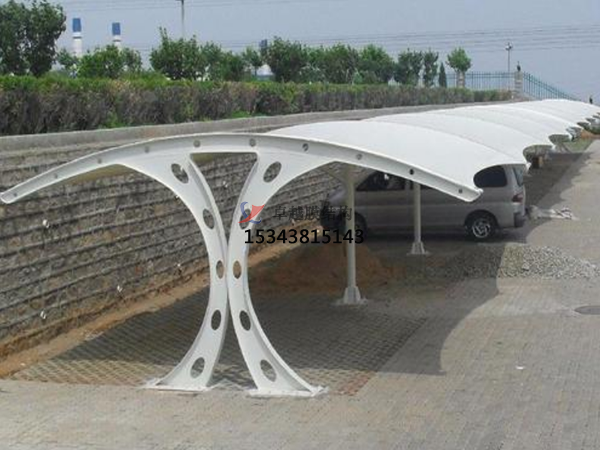 膜結構車棚是近年來在國內開始流行的一種新式的車棚結構。它與以往的舊式車棚相比,結構更加輕盈,而且在使用中比較穩固。它的材料使用了高分子膜結構材料和支撐構件共同組成,并且能根據支撐構件的高低位置不同而呈現不同的形狀。因此在教育,商業,體育館等公共場所都有很廣泛的應用 車棚在更初是作為一種能提供給車輛停泊的地方,使車輛避免了直接面對風吹雨打。用來保證自行車,汽車等在車棚下不受損傷。