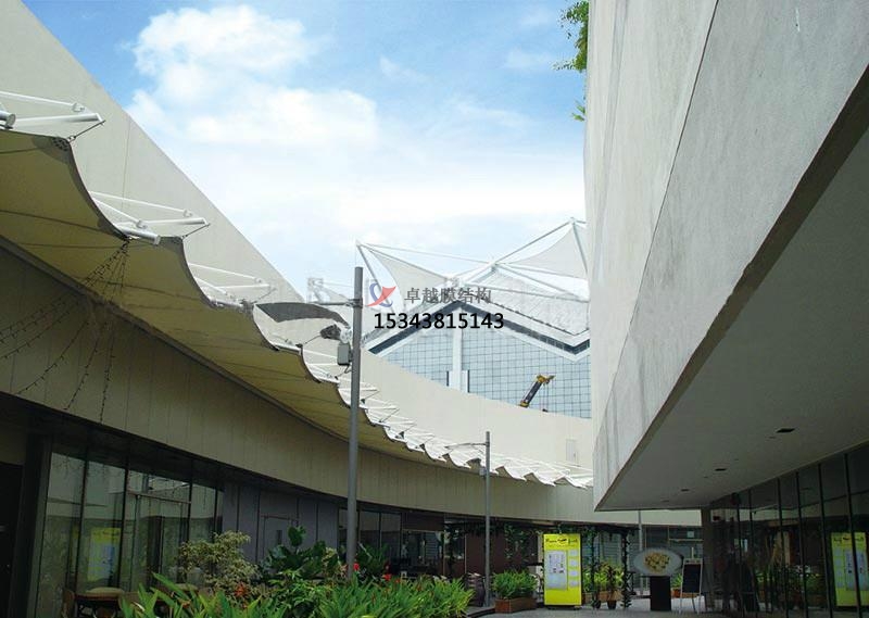 咱們都知道張拉膜是鋼索從邊上穿過,拉出幾個角并固定在不同的高度之上,會構成凹凸落差,這樣的落差看起來是很美好的,相對的打開面積就會大許多,由于在占地面積的暗影中,實踐許多是堆疊不筆直的。