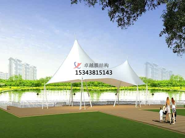 節點細部設計是膜結構景觀車棚工程設計重要的技術環節,不僅影響膜結構景觀車棚建筑整體與局部建筑藝術性,且影響構件制作、安裝、結構受力安全、造價等。連接節點構造設計 充分體現了膜結構景觀車棚設計的美學、專業性、綜合性與精細技術性,是膜結構景觀車棚設計的靈魂。膜結構景觀車棚節點具體形式紛繁復雜,十分豐富。根據膜作用與連接關系,可分為膜節點、膜與剛性邊界、膜與柔性邊界索;