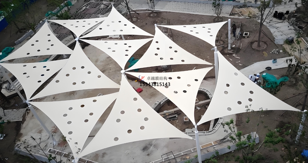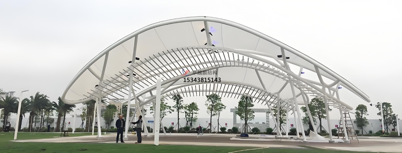 景觀膜結構是一種采用高強度膜材和鋼結構組合而成的建筑形式。它以膜材作為主要受力構件,通過鋼結構進行支撐和固定,形成一個輕盈、飄逸的空間結構。這種結構形式不僅具有極高的承重能力,還具有良好的透光性和抗風性能,使得它成為現代景觀設計中的一道亮麗風景線。