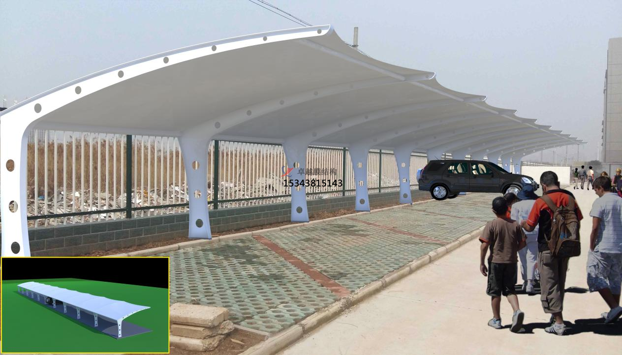 膜結構車棚一改傳統鍵筑材料而使用膜材, 其重量只是傳統建筑的三分之一, 而且膜結構車棚可以從根本上克服傳統大跨度建筑上所遇到的困難.可創造巨大的無遮擋的可視空間。膜結構車棚的使用可以為車輛帶來哪些保障呢?