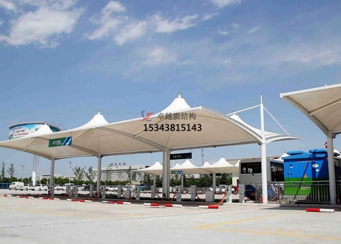 膜結構是一種由高強薄膜材料及加強構件通過一定方式使其內部產生一定的預張應力以形成某種空間外形,可作為覆蓋結構并能承受一定的外荷載的空間結構形式。膜結構以良好的自潔性、隔熱性以及高強耐久、造型新奇、自重輕等優點廣泛應用于各類休閑小品、輕型大跨度無柱空間或輕型屋蓋建筑結構。由于膜結構是張力結構的一種,只有在一定的張力功能下,膜結構才有一定的外形和剛度,因而膜結構建筑表現了力的平衡美,是一種受力更為合理的結構形式。采用輕質膜材,同時輔以柔性拉索、輕型鋼桁架的結構形式,可以很好地達到大跨度、覆蓋大空間的目的。