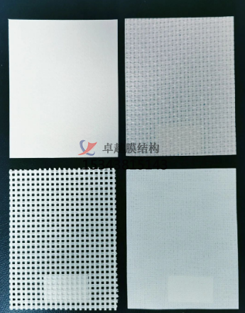 基材紗線編織間距很大,涂層不再是滿覆,形成一定的開孔率(20~70%)。特點是透光率高(30~70%,透光透景)、裝飾遮陽效果好;強度低于外膜、透氣透水、不吸音。